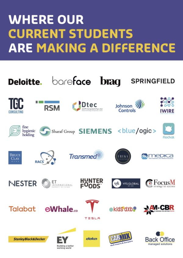 To solve real-world problems, you need to work with real-world partners. We ensure our students are constantly engaging with our network of industry connections in the UAE and internationally.